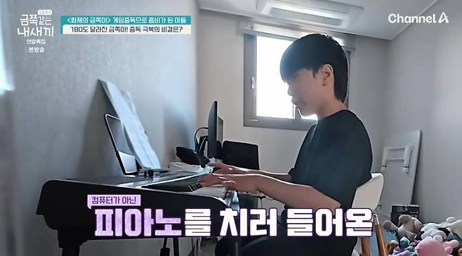 금쪽이는 거실을 서성이다 곧장 컴퓨터가 있는 방으로 향했다. 모두가 숨죽이는 가운데 금쪽이는 컴퓨터 앞이 아닌 피아노 앞에 가서 앉았다. 편안한 얼굴로 피아노를 치는데 집중하는 금쪽이의 모습에 보는 이들은 안도의 한숨을 내쉬었다. 금쪽이를 믿고 있던 아빠는 이제야 환한 미소를 보였다.