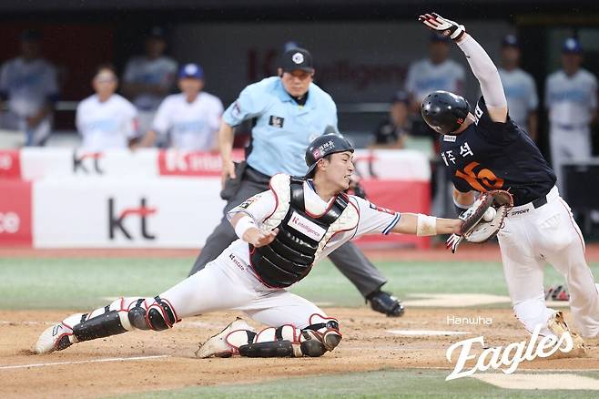 노시환은 후반기 첫 홈런포로 시즌 홈런, 타점 성적은 18홈런 60타점으로 끌어올렸다. 지금 추세라면 2023년 이후 2년 만에 30홈런-100타점 도전도 가능하다. 노시환은 “홈런, 타점 기록은 만족하지만, 타율(0.234)이 너무 낮아서 팬들께 죄송한 마음이 크다”며 “감독님은 타율을 신경 쓰지 말고 내 장점인 홈런과타점 생산에 집중하라고 하셨지만, 신경이 안 쓰일 수는 없다”고 말했다. 이어 “후반엔 좀 더 정확한 타격을 하기 위해 노력하겠다”고 다짐했다.