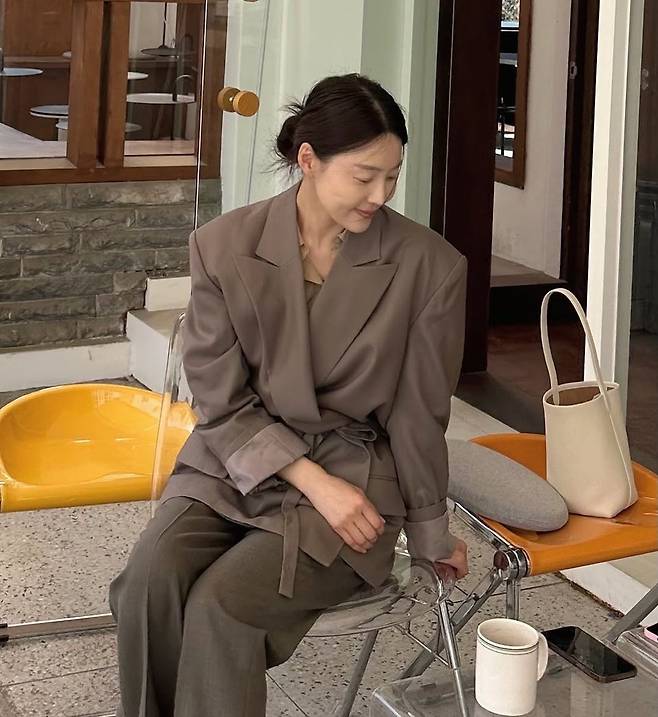한지혜는 여유로운 오후의 카페 테라스에서 차분한 포즈를 취하며 감성 가득한 분위기를 자아냈다. 그녀가 선택한 룩은 브라운 계열의 벨티드 재킷과 같은 톤의 와이드 팬츠. 전체적으로 통일된 톤앤톤 스타일링이 세련되면서도 부드러운 인상을 준다. 특히 벨티드 재킷은 허리를 살짝 조여 실루엣을 정리해주는 동시에, 정장과 캐주얼 사이의 균형을 완벽하게 잡아준다.