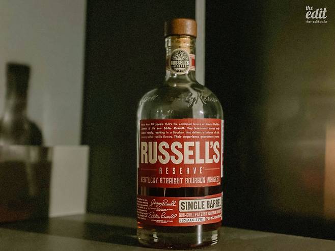 버번 위스키 중에서도 가장 대중적이고 인기 많은 이른바 버번 삼대장으로 와일드 터키, 버팔로 트레이스, 메이커스 마크가 꼽힌다. 40도 중반의 무난한 도수와 전형적인 버번의 풍미를 가진 이 세 가지 위스키를 마셔보고 좋았다면, 다음으로 추천할 만한 위스키가 바로 러셀 리저브 싱글배럴이다. 와일드터키 증류소의 최고 책임자인 마스터 디스틸러 지미 러셀, 에디 러셀 부자의 이름을 딴 위스키다.