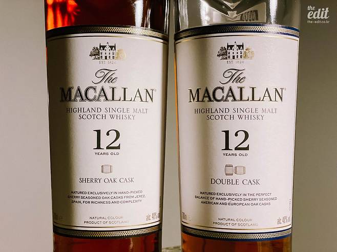 맥캘란 라벨을 보면 숙성 년수를 의미하는 숫자 밑에 오크통이 그려져 있다. 오크통이 하나면 셰리 오크 캐스크, 두 개면 더블 캐스크 라인을 의미한다. 보기 드물지만 세 개가 그려진 트리플 캐스크 라인도 있다. 오크통의 수는 맥캘란 위스키를 숙성하기 위해 몇 가지 오크통을 사용했는지를 의미한다. 이 중에서도 유러피안 셰리 캐스크에서 숙성시킨 원액만 사용하는 셰리 오크 캐스크에서 가장 전형적인 셰리 위스키의 매력을 잘 느낄 수 있다.