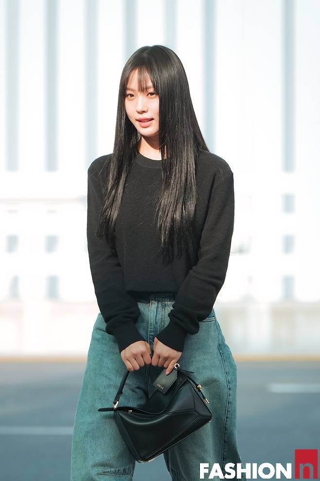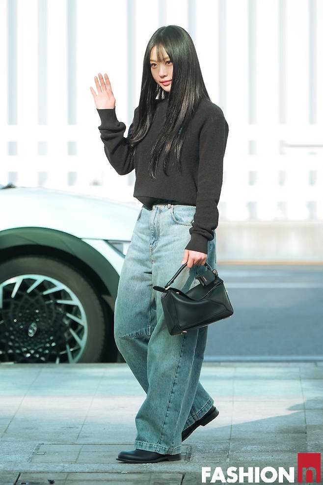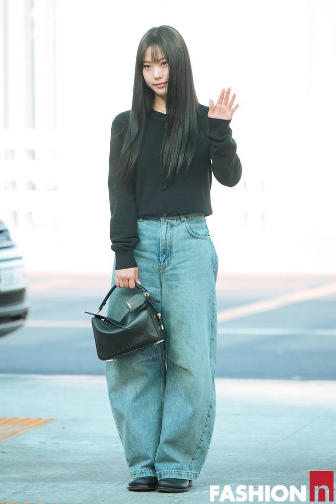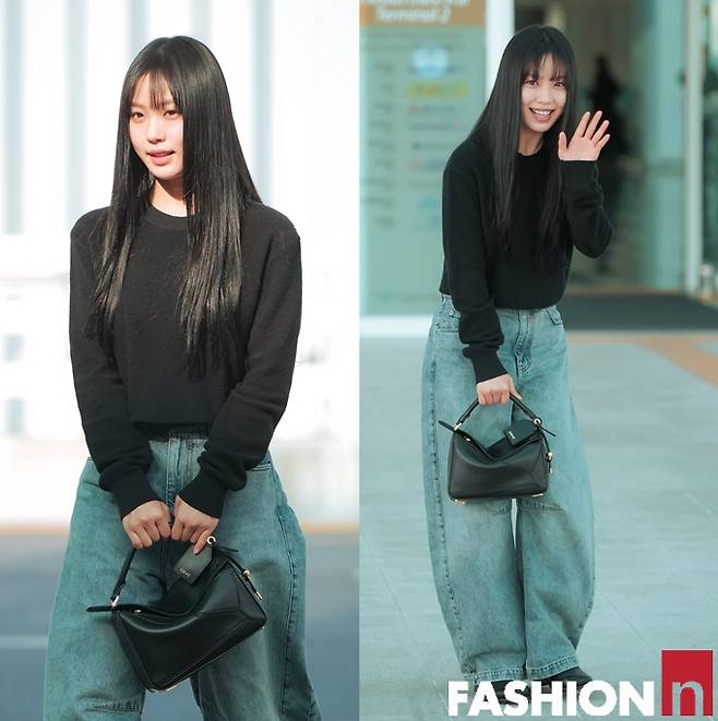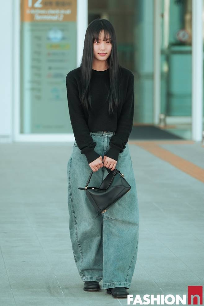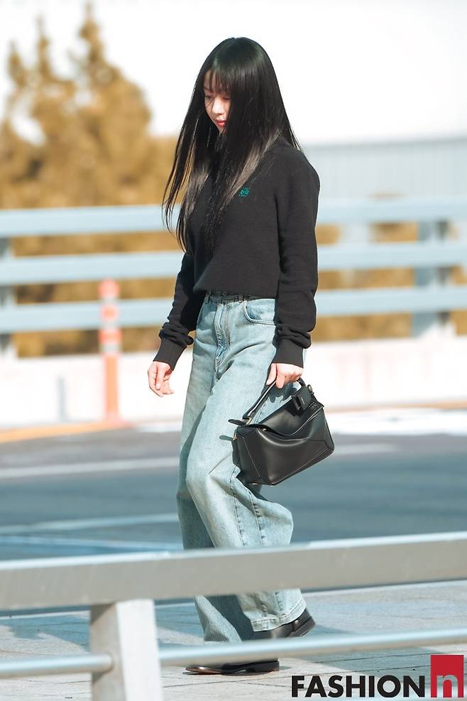 이날 고민시는 앞머리를 내린 긴 생머리에 검정 니트 상의 하나에 와이드 데님 팬츠를 매치한 출국룩으로 스윗하면서도 청순한 스타일을 완성했다.