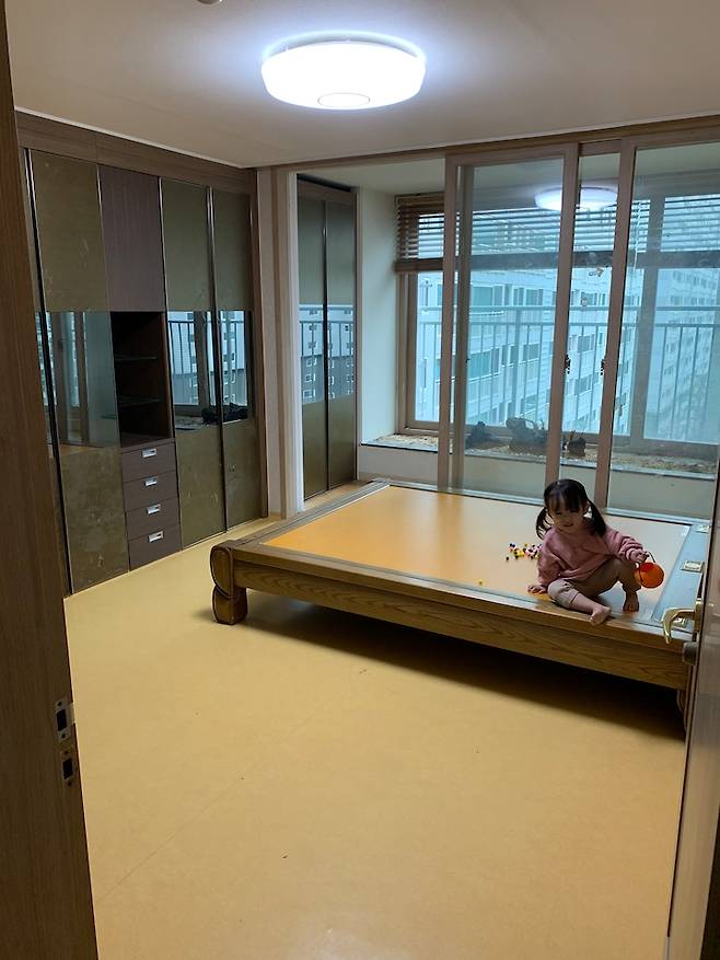 짐작하셨듯이 화단과 붙박이장 샷시(새시) 모두 제거했어요. 안방이라면 부부가 함께 잠드는 곳인데 사실 안방에서 잠을 자본게 손에 꼽을 정도에요. 딸과 아이방에서 함께 잠들다 보니 안방은 신랑 독차지입니다.