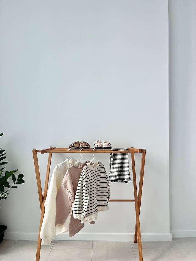 책상 맞은편엔 우드 건조대를 두어서 이불 털고 광합성 시킬 때나 애벌 빨래 같은 거 건조하는 용도로 씁니다. 처음엔 가격대가 조금 있다고 생각했는데 사용할수록 아주 잘 샀다고 생각되는 효자템이에요.