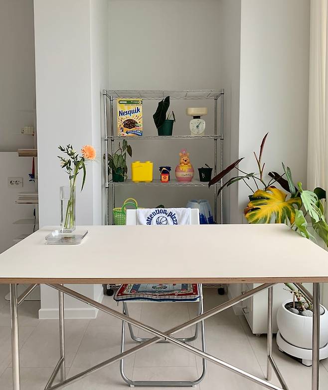 메탈 선반과 테이블을 구매하고 처음으로 찍었던 사진이였던 것 같아요.