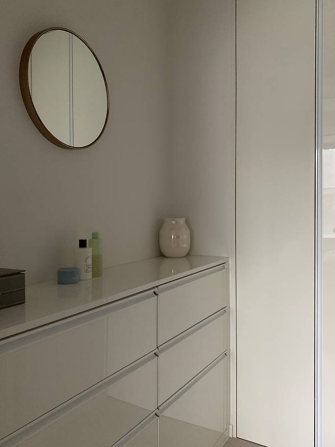 예전에는 소품 같은 거 올릴 수 있도록 서랍장이나 수납장 등등 가구가 많으면 좋은 줄 알았지만 지금은 오히려 가구가 많으면 물건도 많아 진다는 걸 깨달아서 가구는 필요 이상으로 두지 않고 있어요.