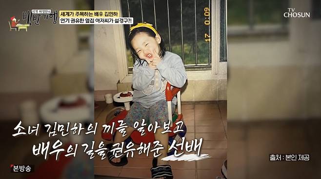 배우 김민하는 어릴 적 옆집에 살던 설경구의 권유로 연기의 길을 걷게 되었다.