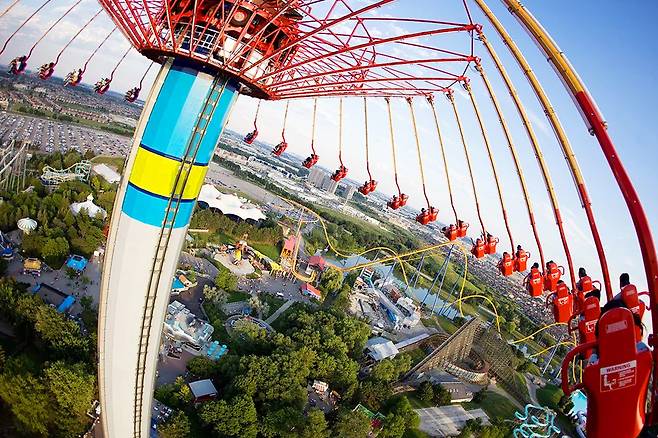 작은 의자와 안전벨트에 몸을 의지하고 있으면, 무려 276m 상공에서 시속 64km에 달하는 빠른 속도로 빙글빙글 도는데요.