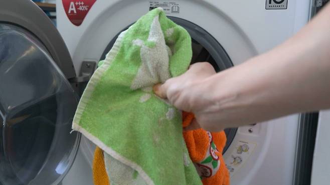 세탁기에 두툼한 수건 2~3장을 함께 넣어 주세요. 두툼한 수건이 함께 들어가야 세탁기에 가해지는 충격을 완화시켜 세탁기가 망가지지 않습니다. 또, 운동화 외피에 가해지는 손상을 줄일 수 있어요.