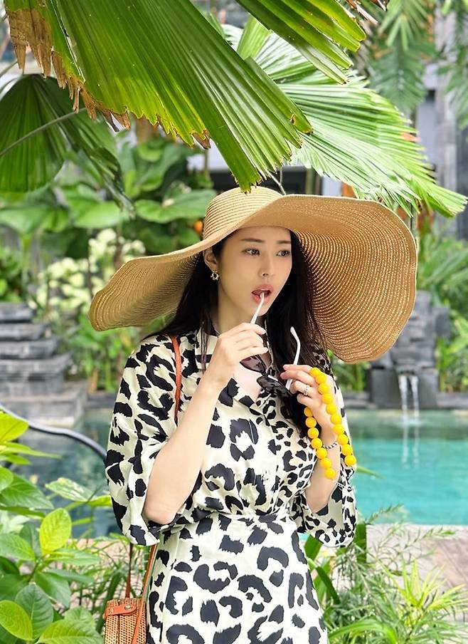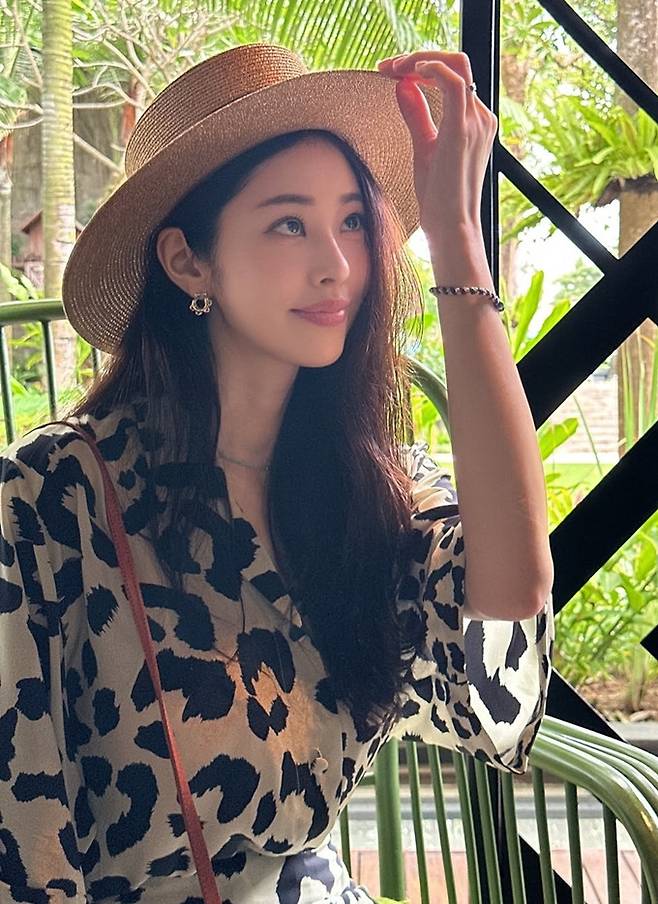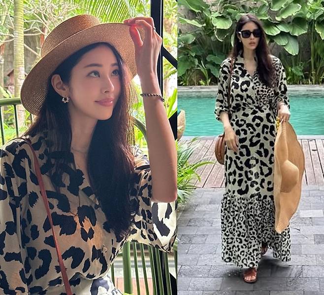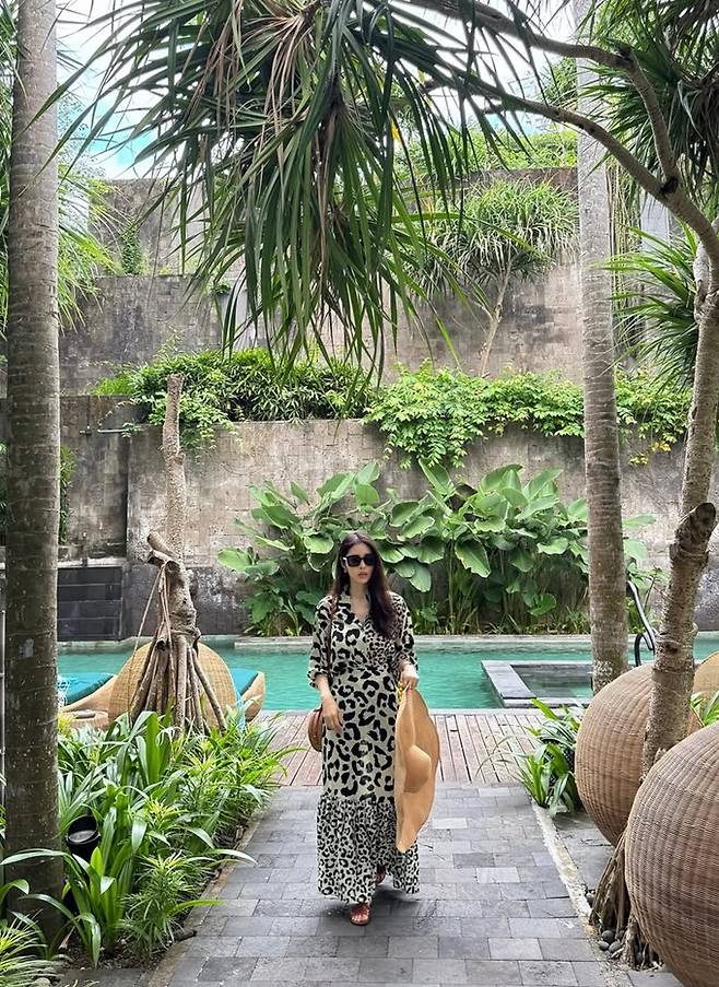 공개한 사진에서 서동주는 야자수와 이국적인 풍광이 어우러진 발리 풀빌라를 배경으로, 과감한 레오파드 패턴의 롱 원피스를 입고 신혼 여행 순간을 만끽하는 모습을 노출했다.