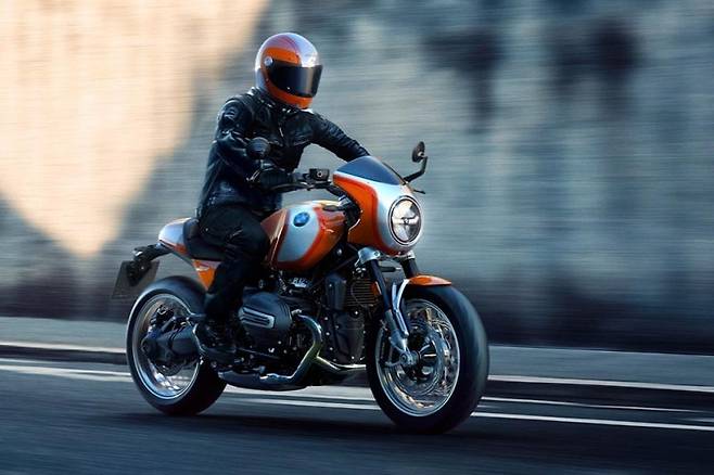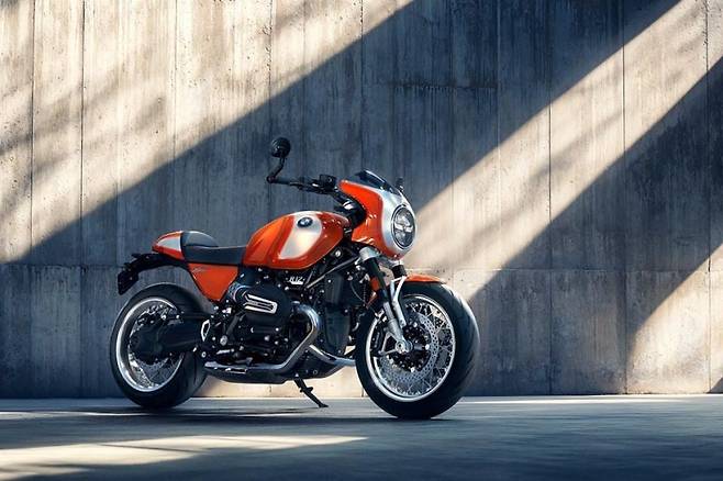 BMW 뉴 R 12 S는 1970년대의 전설 ‘BMW R 90 S’의 디자인 DNA를 계승하면서도 현대적인 기술력으로 풀어냈습니다. 핸들바에 장착된 콕핏 페어링, 어두운 틴팅의 윈드스크린, 그리고 주황색 스티치가 포인트인 짧은 시트는 클래식함과 날렵함을 동시에 갖췄죠.