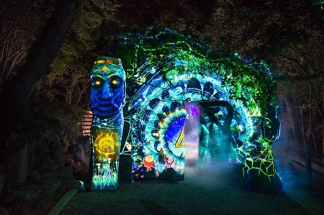 동호동의 남망산 공원 1.5km의 산책길이 밤이 되면 환상적인 디지털 미디어 아트와 조명을 이용해 15개의 테마로 구성된 테마파크로 바뀌는 디피랑입니다. 국내 최장‧최대 규모를 자랑하는 야외 야간 디지털 테마파크인데요.