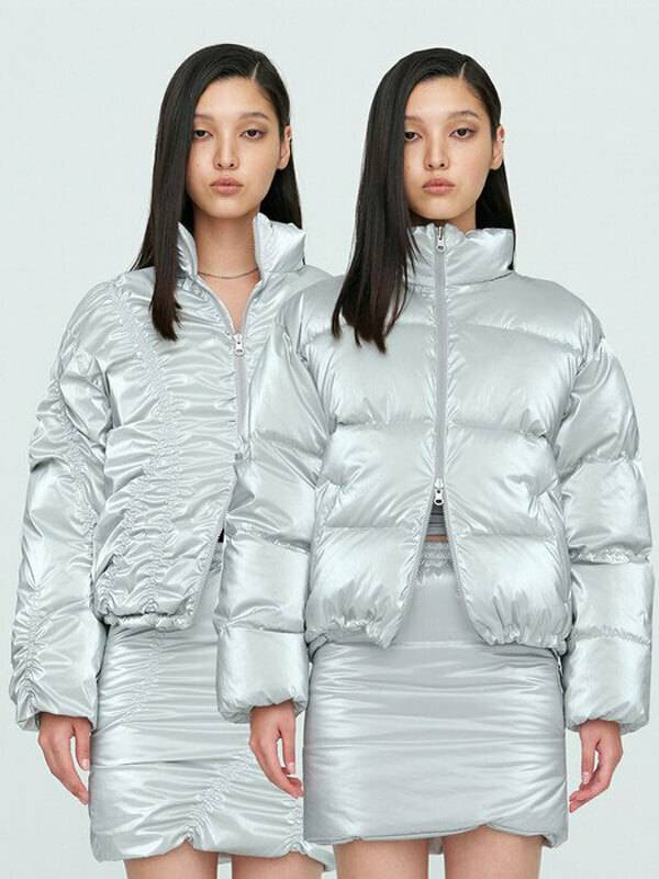 나체는 다양한 테마 안에서 지극히 유연하고 자연스러운 미를 추구하고자 한다. 독특한 디테일과 아방가르드한 실루엣은 찰나의 순간을 가장 아름답게 표현해준다. GLARE REVERSIBLE PADDING은 실버 컬러감이 눈길을 끄는 제품으로, 안쪽 면은 스모킹을 잡아 포인트를 더했다. 동물의 털을 사용하지 않고 거위털과 비슷한 보온력을 자랑하는 웰론을 충전재로 활용했다.