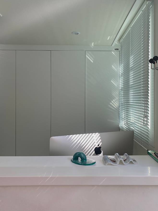 환기와 공기 순환을 위해 기존에 있던 유리를 철거하고 대신 블라인드로 공간 분리를 했고요.