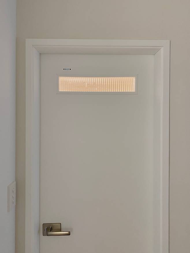화장실 문에는 모루 유리를 맞추어 주었고, 손잡이는 도무스 제품, 집의 전체적인 스위치는 르그랑으로 맞추어 주었어요.