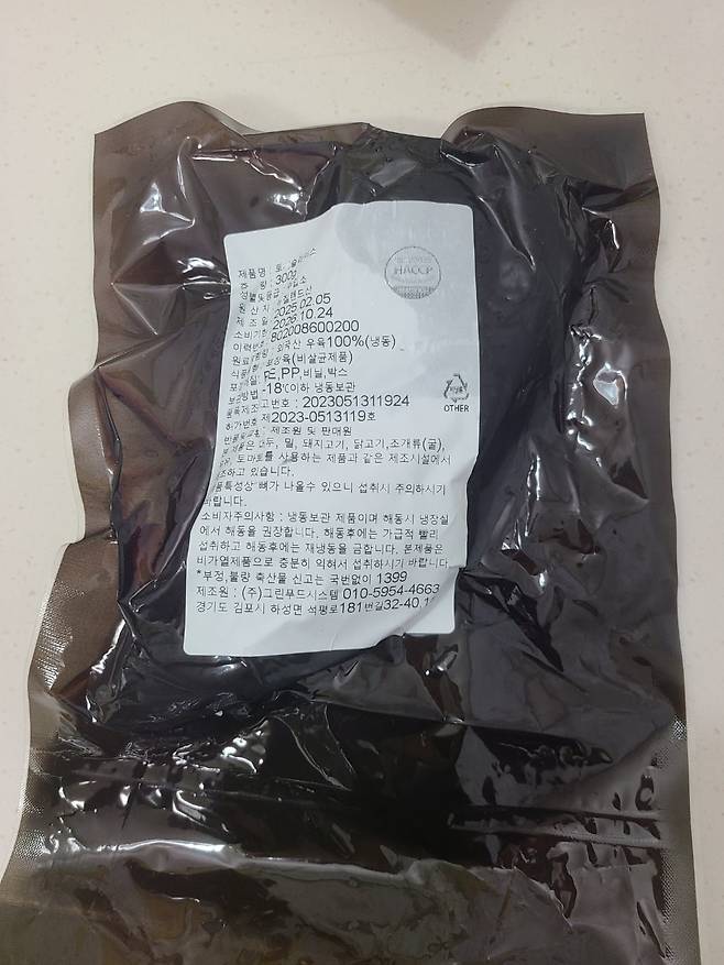 냉동으로 왔고 냉장고에서 해동후에 하나는 구워먹고 나머지 하나 포장지 사진 첨부 합니다.