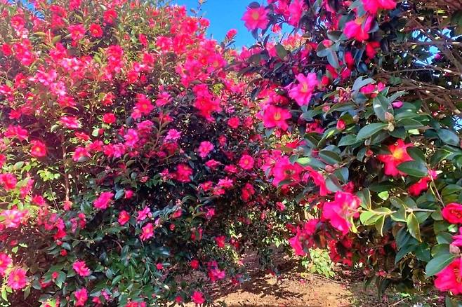 이처럼 제주 곳곳에는 동백나무가 정원을 이루고 있다. 서귀포시 안덕면에 위치한 카멜리아 힐은 공원 전체가 동백나무로 꾸며져 있어 겨울철 방문객들에게 장관을 선사한다.