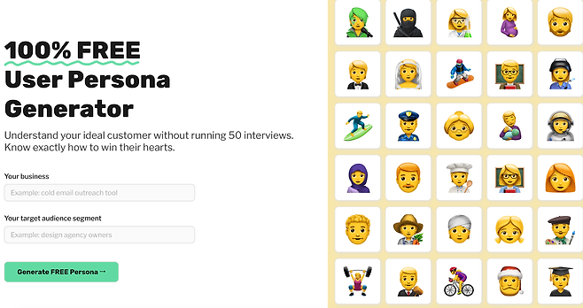 서비스의 구체적이고 세밀한 페르소나를 원하신다면 ChatGPT의 AI User Persona Generator를 사용해보시면 좋을 것 같아요. 고객을 다양한 관점에서 효과적으로 이해하는데 도움이 되실거에요.