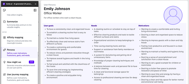 - 페르소나는 물론 사용자 경험과 전략과 관련된 다양한 정보를 생성할 수 있어요.