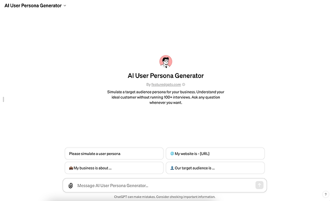 마지막으로 소개하고 싶은 건, 바로 OpenAI의 도구 중 하나인 ChatGPT에서 제공하는 'AI User Persona Generator' 입니다.