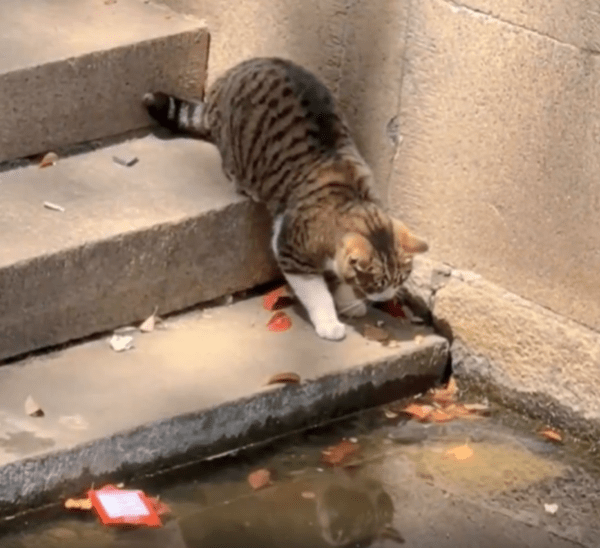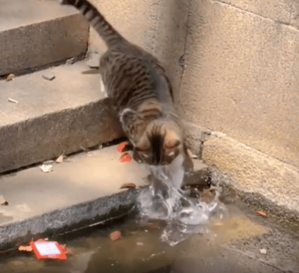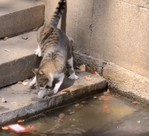 말 없이 집중하던 고양이, 한 번의 앞발로 보여준 자연의 본능