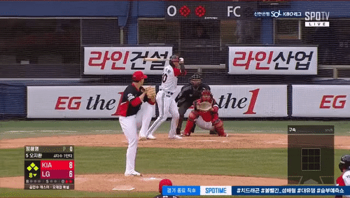 좌타자 몸쪽 낮은코스로 파고드는 변화구를 잡으면서 끌어내리는 이른바 '덮밥'으로 스트라이크를 볼로 만든 KIA 타이거즈 포수 한승택