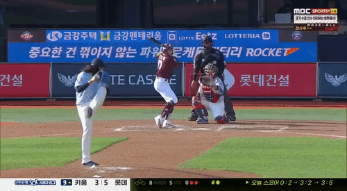 비슷한 코스, 비슷한 궤적으로 날아온 김원중의 변화구를 끌어올리는 프레이밍으로 스트라이크 콜을 받아내는 KBO 최고의 프레이밍 장인 롯데 자이언츠 포수 유강남