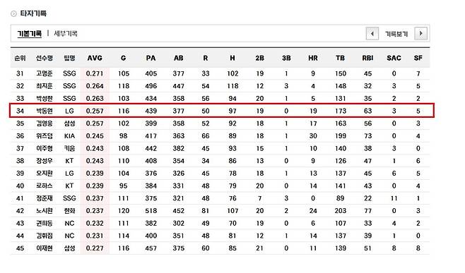 2025 시즌 박동원은 타율 0.257, 19홈런 63타점이라는 준수한 성적을 기록 중이다.