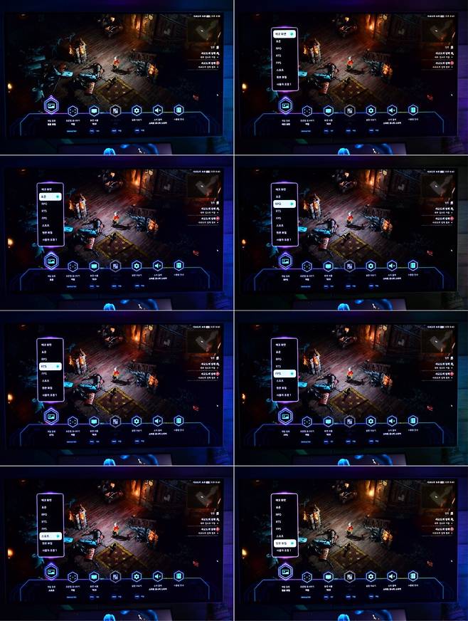 각 장르별로 제공되는 색감은 눈의 피로도를 줄이고 게임에 집중할 수 있도록 조절됩니다. 에코에서 표준으로 전환하면 화면 밝기와 색감이 두드러지게 바뀌며, RPG, FPS, 스포츠 모드에서는 레드와 블루 톤이 미세하게 다릅니다. 원본 화질은 사실적이고 부드럽게 표현되며, 에코에서 표준 모드는 선명도, 밝기, 청색이 강조됩니다. 개인적으로 원본 모드는 디자이너나 그래픽 작업에 가장 적합하며, 표준 모드는 다양한 장르의 게임에 적합합니다.