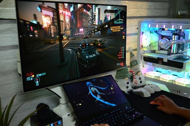 사이버펑크 2077은 오랫동안 고사양을 요구하는 게임으로 잘 알려져 있으며, 엔들 링과 같이 오픈월드입니다. 그래서 넓은 맵과 많은 NPC들이 공존하면서 화려한 네온사이인의 도시배경으로 모니터의 색감도 매우 중요한 요소입니다. 사이버펑크 2077로 경험한 OLED는 깊이가 다른 색감과 정밀하게 묘사되는 디텔일 표현은 고성능 PC와의 조합으로 더욱 빛납니다.