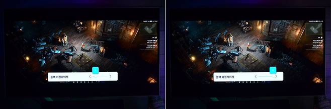 16:9 모드에서는 덜 느껴지더라도, 21:9 모드에서는 블랙 이퀄라이저가 어두운 부분을 확실히 밝게 해줍니다. 게임 설정이 아닌 모니터 자체가 선명도, 채도, 밝기를 분석하여 최적의 밝기로 숨겨진 부분을 볼 수 있게 해줍니다.