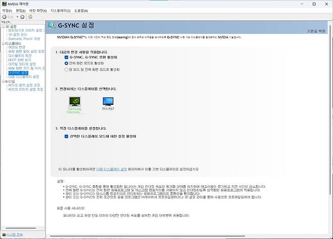 기존 G8의 이슈가 되었던 DP포트 연결시 240㎐ 깜빡임은 전혀 NVIDIA G-SYNC를 설정과 상관없이 전혀 발생하지 않았습니다. 제가 받을 때 펌웨어가 최신으로 업데이트 된만큼 발빠른 대처와 개선된 G80SD모델로 게임하는 동안 전혀 문제가 발생되지 않았습니다.
