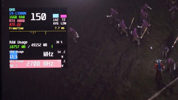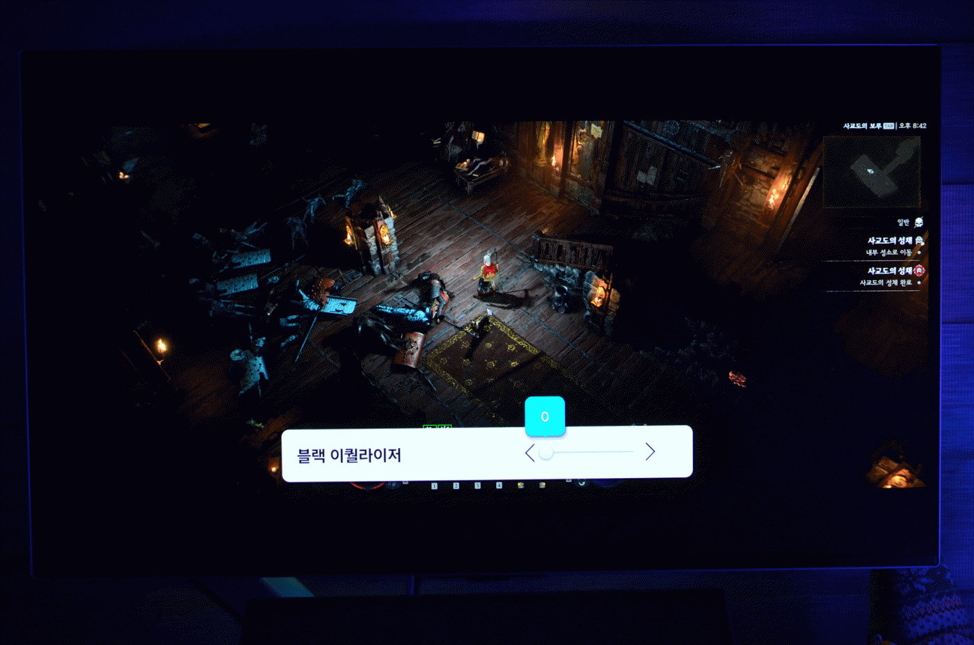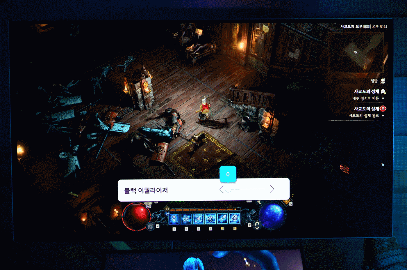 디아블로 IV는 고사양 게임답게 최대150/ 평균 142프레임을 유지하며, 4K는 뛰어난 그래픽 퀄리티와 텍스처를 경험할 수 있었습니다. 또한, 어두운 블랙영역부분은 꺼져있는 LED이 아닌 심도 깊은 디테일을 느낄 수 있습니다. 그전에는 보지 못햇던 어두운 부분을 디테일하게 볼수 있어 몰입감이 배가됩니다.