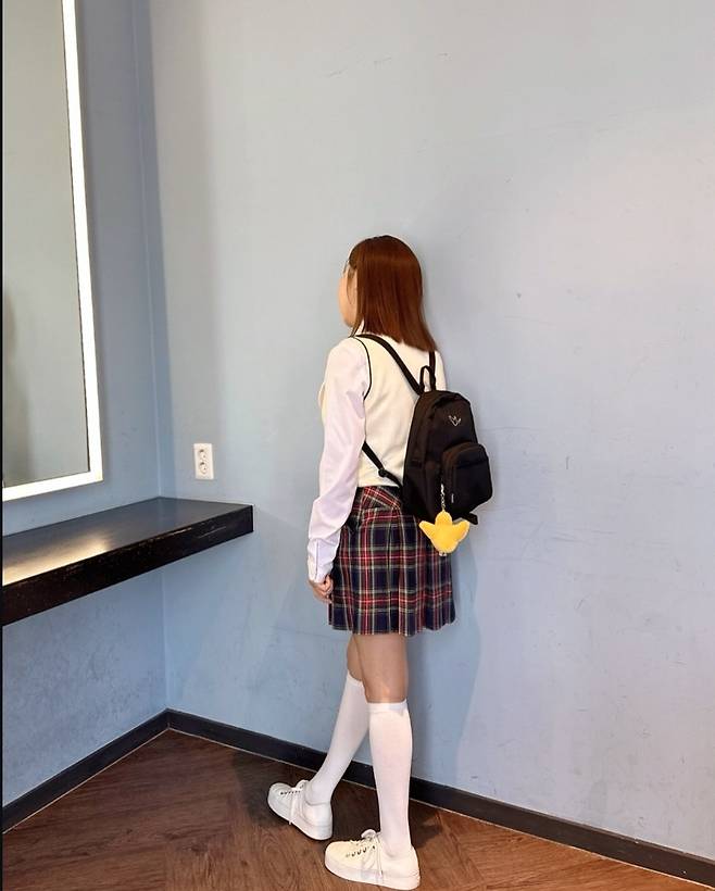특히 리본 대신 넥타이로 살짝 다른 포인트를 준 센스가 돋보였고, 백팩까지 메고 귀엽게 포즈를 취해 상큼한 매력을 한껏 발산했습니다.