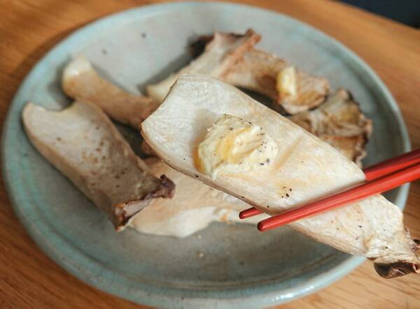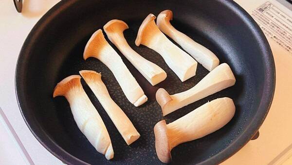 버섯을 굽더라도 저온에서 천천히 구워 탄 부분 생성을 억제하세요.