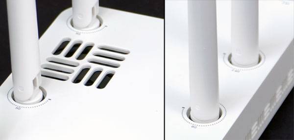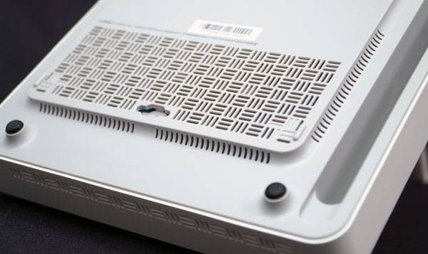하단 통풍구 구성을 보면 자연스런 대기 흐름을 유도한 것을 알 수 있다. 안테나를 제외한 순수 제품 크기만 해도 248mm x 207mm x36.5mm로 상당하기 때문에, 책상이나 캐비넷 등에 수평 배치가 어려울 수 있는데, 이런 경우 월마운트 활용이 가능하도록 약 16cm 간격의 월마운트 홀도 제공되다.