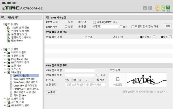 USB 포트를 활용한 기능 확장은 고급형 제품의 오래된 전통이라면 전통인 만큼 관점에 따라서는 당연하게 볼 수 있는데, ipTIME AX7800M-6E는 보안 연결을 위한 VPN도 다양한 방식을 지원한다.