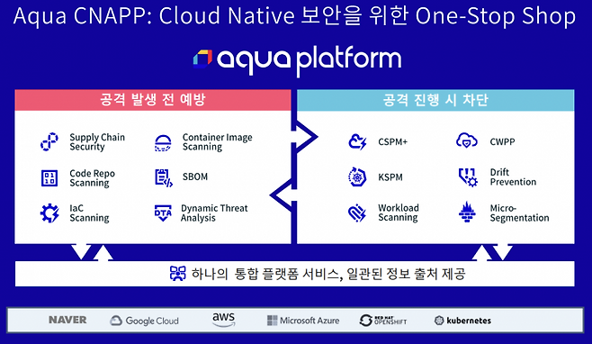이같은 매출 성장에 대한 자신감의 첫 번째 원인은 클라우드 개발 환경 전체를 외부의 침입으로부터 보호해주는 플랫폼 CNAPP(클라우드 네이티브 앱 보호 플랫폼, 이하 시냅)이 꼽힌다. 시냅은 시장조사기관 가트너가 제시한 용어다. 아쿠아시큐리티의 시냅 플랫폼은 클라우드 환경에서의 앱 개발부터 테스트와 서비스 출시까지 전 과정에 걸쳐 보안을 책임진다는 것이 회사의 설명이다.