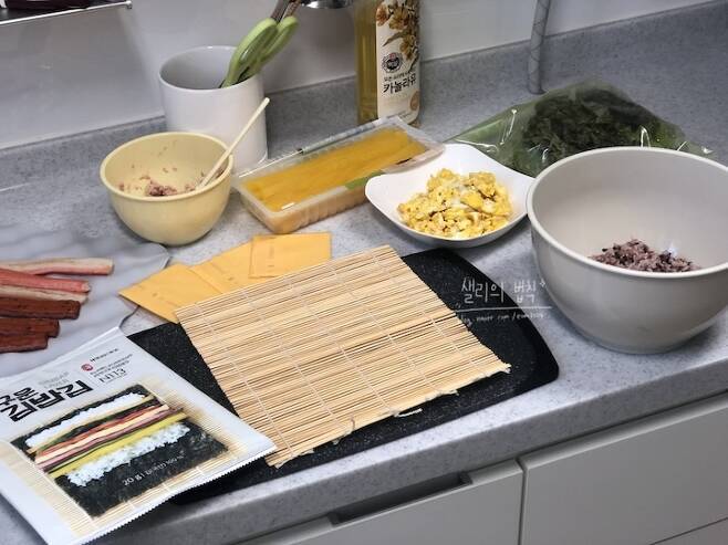 여러 재료가 들어가는 김밥 같은 걸 만들 때 재료가 마르지 않게 뚜껑을 덮어둘 수 있어요.