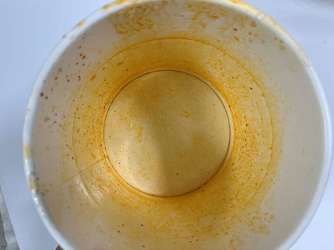 맛있게 드신 후 남은 컵라면 용기는 국물 색이 배어 있거나 음식물이 남아 있어 재활용이 어려운 경우가 많습니다. 이럴 때는 가볍게 물로 헹궈낸 뒤, 부피를 획기적으로 줄여서 일반 쓰레기로 배출하는 것이 가장 깔끔한 뒷정리 방법입니다.