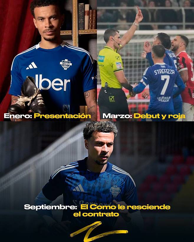2022년 토트넘을 떠난 뒤 부상과 자기관리 문제 등으로 끝없이 추락한 알리의 상황은 더 암울하다. 2024~2025시즌을 통틀어 이탈리아세리에A에서 단 1경기 출전에 그쳤다. 알리는 3일 상호합의 하에 세스크 파브레가스 감독이 이끄는 코모와 계약을 해지했다. '꾸준한 경기 출전'을 원했다고 한다.