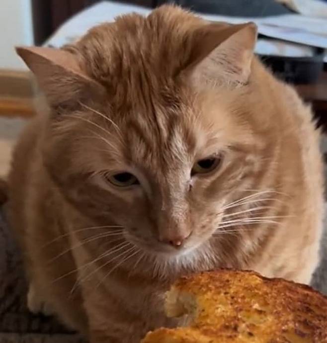 사연은 이렇습니다. SNS상에는 겁도 없이 집사가 먹고 있는 마늘빵에 관심을 보이는 고양이 모습이 담긴 영상이 올라왔죠.