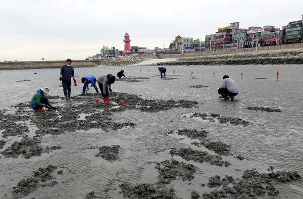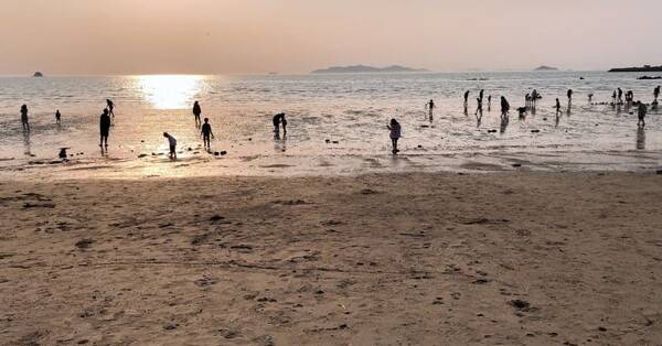 바닷물이 들어왔다가 빠진 직후에는 굳이 호미를 사용하지 않아도 될 정도로 수많은 바지락이 갯벌 위에 놓여있는데요. 저녁에는 전문적으로 해루질을 하시는 분들이 찾을 정도로 다량 채집을 하기 좋습니다.