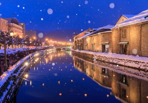 특히 겨울철 오타루 운하 산책로에 설치된 조명이 켜지면 낭만적이고 로맨틱한 분위기가 연출되어 황홀합니다.