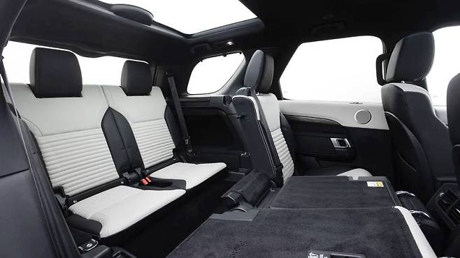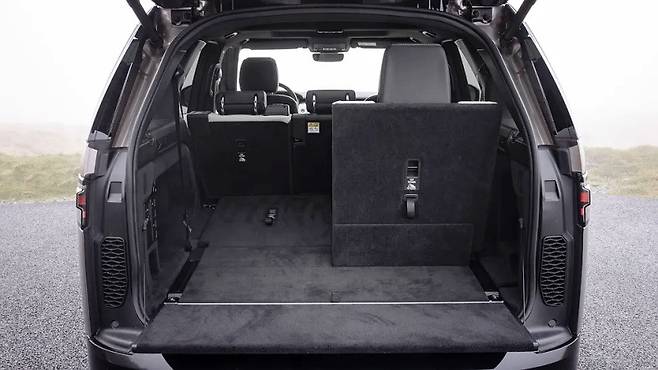 디스커버리는 7개의 좌석 모두 성인이 앉을 수 있을 만큼 넉넉한 공간을 제공합니다. 중간 열에는 954mm의 레그룸이 있으며, 세 명의 성인이 나란히 앉기에 충분합니다. 접이식 메커니즘은 전동식이지만, 볼보 XC90만큼 직관적이지는 않습니다. 트렁크 용량은 7인승 구성에서 258리터이며, 모든 뒷좌석을 접으면 2,406리터까지 확장됩니다. 접이식 카펫 선반은 300kg의 하중을 견딜 수 있다고 하지만, 다소 허술해 보인다는 평가도 있습니다.