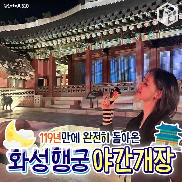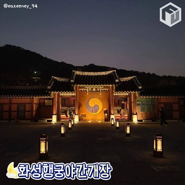 은은한 조명이 켜진 고즈넉한 화성행궁에서 다채로운 공연을 즐기고, 각종 포토존에서 인생 사진도 남겨보세요! 조선시대 정조대왕이 느꼈을 화성행궁만의 정취를 가득 만끽하며 특별한 추억을 쌓으시길 바랍니다.