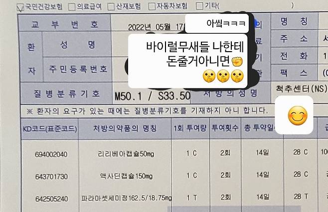 처방받은 독한 진통제 +스테로이드 먹으며 버팀.