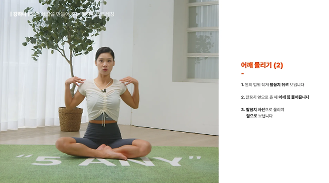 우선, 앉은 상태에서 시작해서 어깨부터 풀어줍니다.