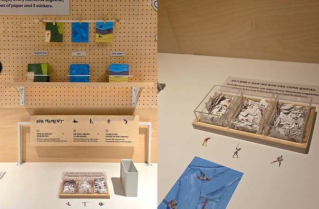 관객이 엽서를 직접 만들 수 있는 ‘Our Moment’ 섹션. ‘각자의 순간을 담아보세요. 그 작은 행위가 곧 특별한 이야기가 됩니다.’라는 문구가 있다. ⓒDen