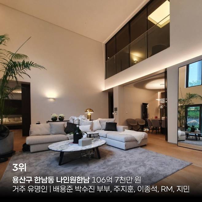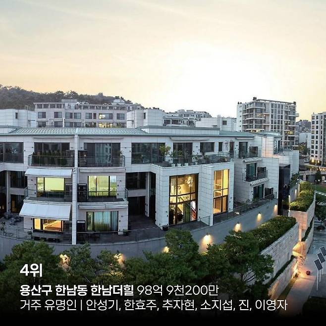 서울 대표 부촌으로 꼽히는 서울 용산구 한남동 유엔빌리지 내 위치한 주택입니다. 지하3층~지상6층 1개동 17가구로 이뤄져있는데요. 단층형 2가구를 제외하고는 전부 복층형으로 지어진 이 빌라는 분양 당시 가격이 120억~170억원에 달했죠. 소유주 절반 이상이 3040 영리치인 것으로 보도돼 화제가 일기도 했습니다.